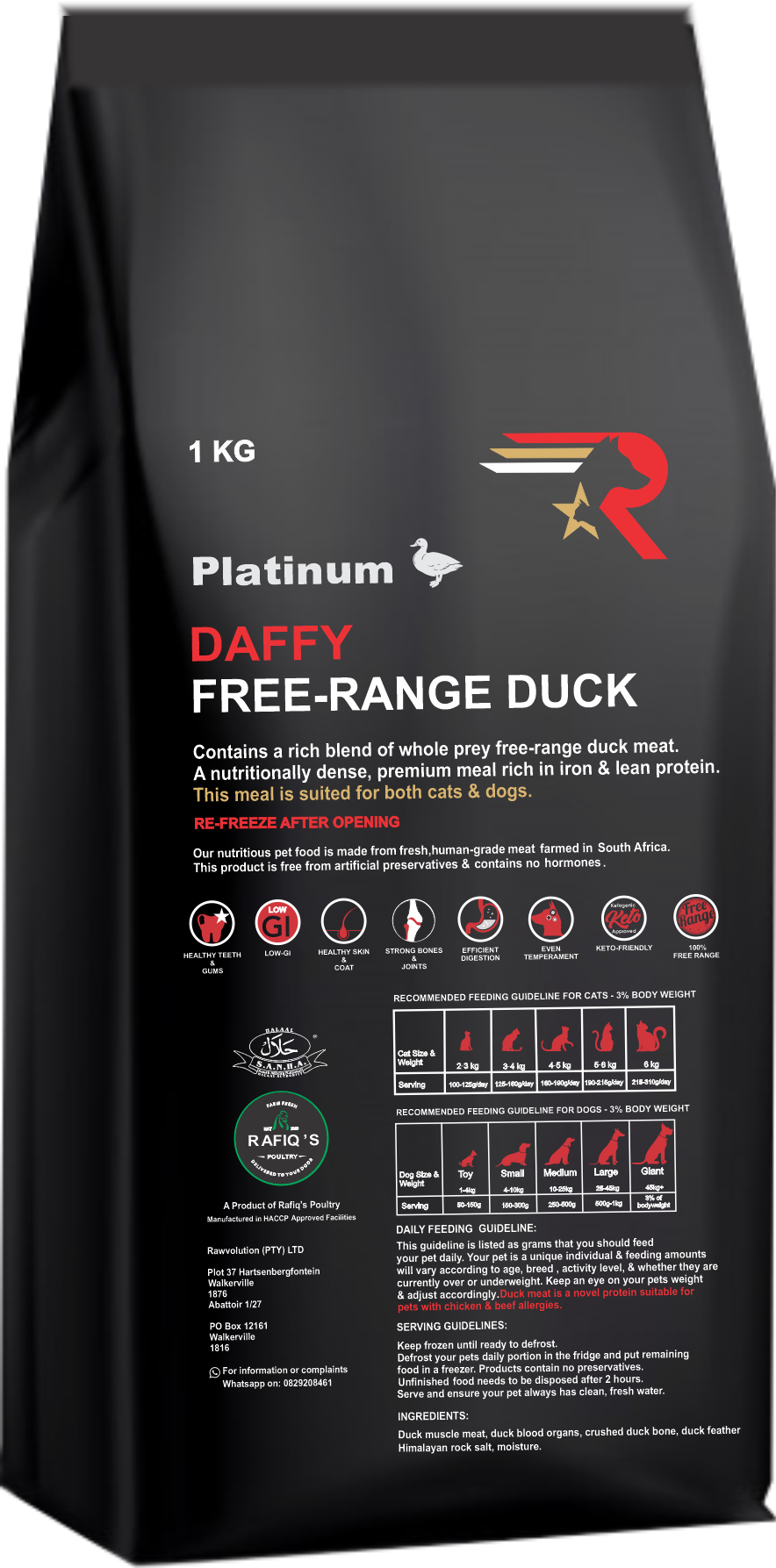 - Contains free-range duck muscle meat, organs and crushed bones.